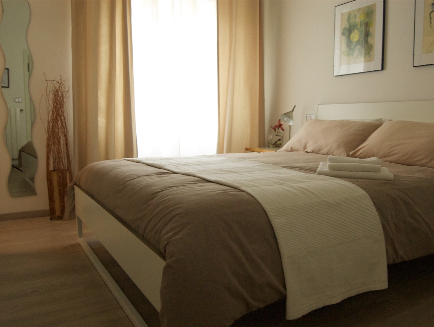 Dallo stile asciutto ed essenziale. Uno spazio ampio e confortevole dai colori neutri e rilassanti, con alcune suggestive inserzioni cromatiche. 49.99€ come doppia uso singola, o 70€ come matrimoniale.