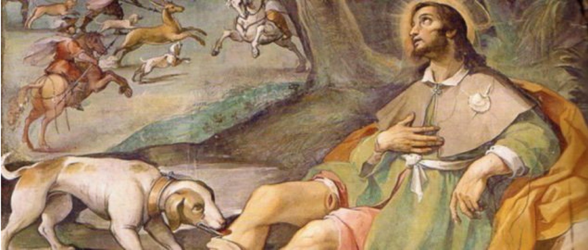 Acquapendente, meta e tappa storica del pellegrinaggio verso Roma, rappresenta uno dei luoghi privilegiati per la Sua venerazione; lungo la via Francigena, nell’attuale chiesetta di S.Antonio e S. Caterina, sul lato destro dall’aula, in una nicchia all’interno della cappella a Lui dedicata, si conserva una pregevole statua lignea policroma che lo raffigura con singolare immediatezza simbolica.