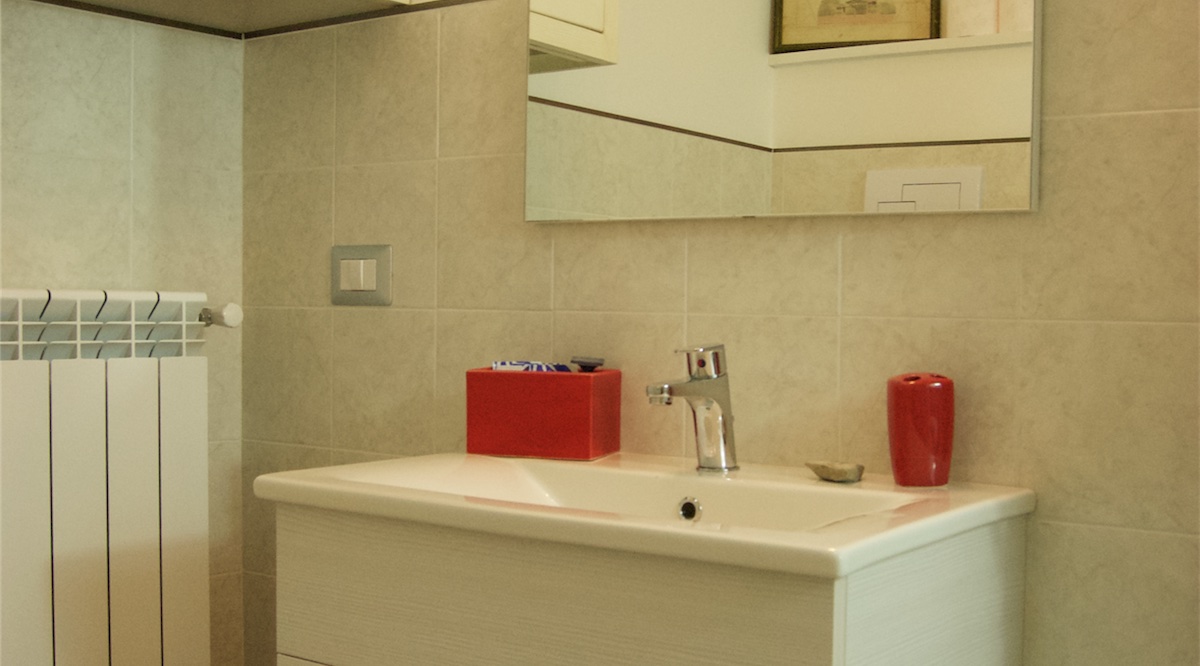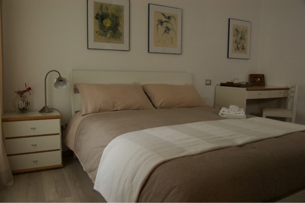 Gli interni, completamente ristrutturati nel 2015, hanno nuovi pavimenti in laminato di legno, ma conservano alcuni degli elementi originali tipici degli anni 60, tra cui i marmi delle scale e il pavimento in graniglie dell’ingresso. Le due stanze matrimoniali, e matrimoniali uso singola, ognuna con bagno privato, sono ampie e luminose e dispongono di tutti i comfort.