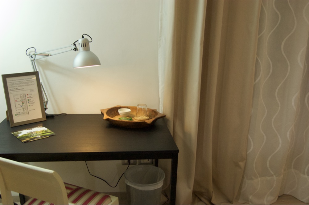 Nel salottino con angolo cucina e grande tavolo tondo, serviamo le colazioni in un clima discreto e conviviale. Lo stile fresco ed informale, la vivacità dei colori e un buffet ricco e gustoso, vi accoglieranno al profumo del caffè. Il frigo bar è sempre a disposizione degli ospiti.